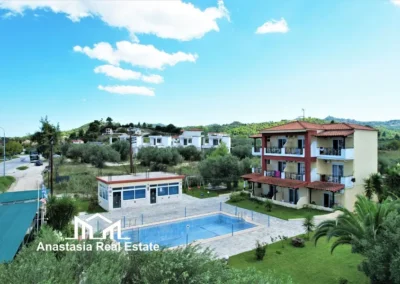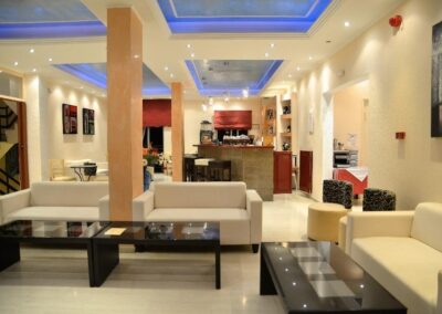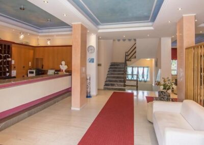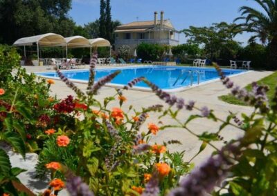 Lokacija: nalazi se na uzvišenju u mestu Perama, oko 100m od peščano-šljunkovite plaže (ulica između). Do plaže se može doći podzemnim prolazom. U neposrednoj blizini hotela postoji market za osnovnu nabavku, restorani i kafići. Od grada Krfa, do kojeg saobraća autobuski prevoz, hotel je udaljen 10km, od Benitsesa 2.5km, a od aerodroma 8km.