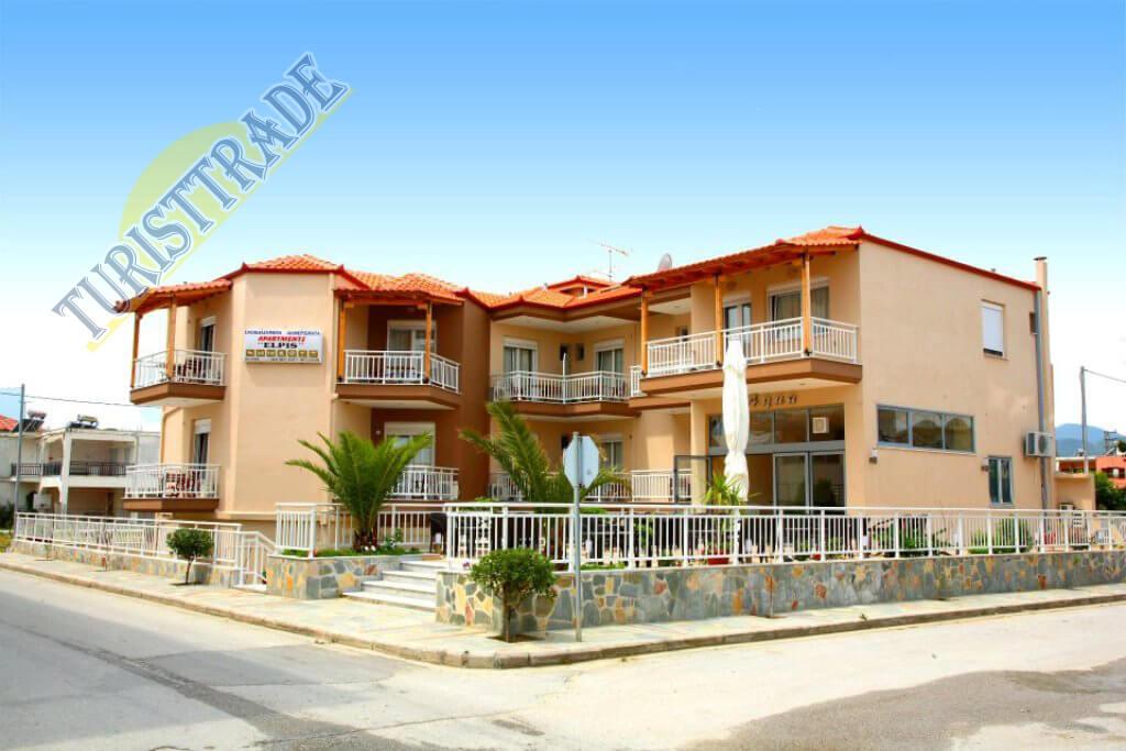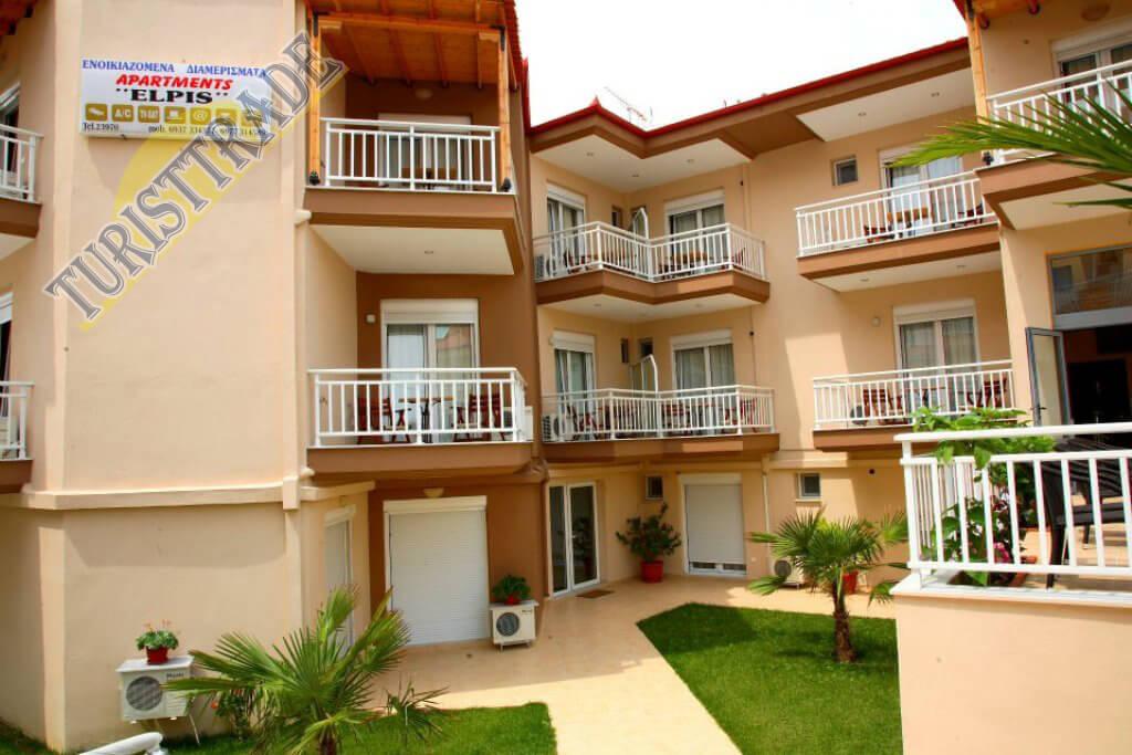 Vila Elpis se nalazi u Nea Vrasni, na svega tridesetak metara udaljenosti od uređenog šetališta pored plaže. Pozicija vile i blizina plaže dovoljna su preporuka za letovanje u Grčkoj upravo u ovim apartmanima u Nea Vrasni. Objekat poseduje dvokrevetne, trokrevetne i četvorokrevetne studije, kao i četvorokrevetne apartmane sa odvojenom spavaćom sobom. Studiji i apartmani su smešteni u prizemlju, na prvom i drugom spratu vile. Sve smeštajne jedinice vile Elpis, iz ponude “Letovanje Grčka – Nea Vrasna apartmani”, opremljene su kuhinjom (rešo sa jednim ili dva grejna polja, manji frižider i osnovni potrebni pribor), kupatilom, TV-om, klima-uređajem (korišćenje uračunato u cenu), kao i terasom sa garniturom za sedenje, dok studiji u prizemlju nemaju terase, već koriste dvorišni prostor za sedenje. Veličina studija je cca 20-22m² + terasa, a apartmana cca 27m² + terasa. Vila Elpis nema sopstveni parking.