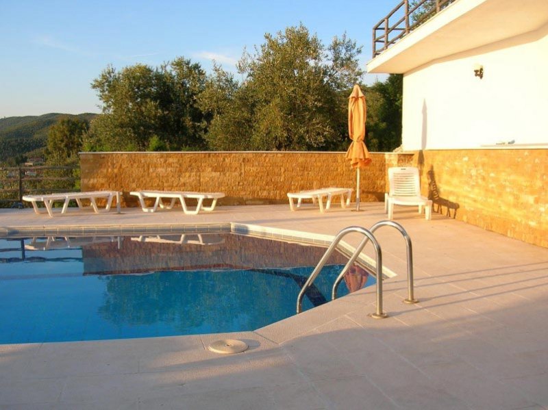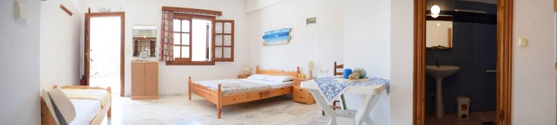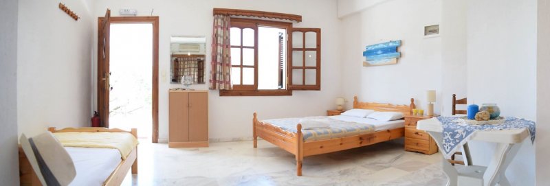 Nalazi se nedaleko od centra mesta, u veoma mirnom kraju pored kuće Teodoros. Udaljena je oko 300 metara od mora. Poseduje uređeno dvorište sa ležaljkama. Jedinice su 1/2, 1/2+1 studiji i 1/4 apartman. Svi poseduju čajnu kuhinju, TWC i balkon. Dvokrevetni studiji imaju jednu prostoriju sa dva odvojena kreveta. Treći krevet u studiju je pomoćni krevet. Dvokrevetni studiji sa pomoćnim krevetom nalaze se u prizemlju. Apartman poseduje dve spavaće sobe i odvojenu kuhinju. Svaka soba ima po dva odvojena kreveta. Usluga je smeštaj na bazi najma studija/apartmana.