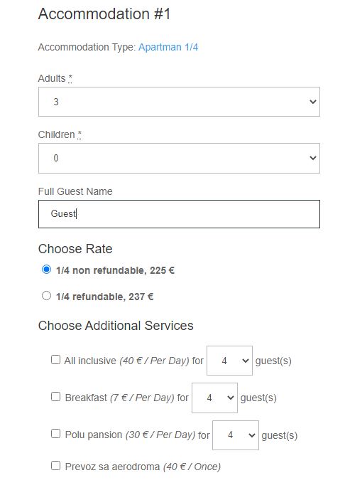 Prilikom rezervacije, klijent može rezervisati dodatne usluge koje vaš smeštaj pruža.( Prevoz, obilaske, polupansion i sl..). Vi unapred definišete cene i vrstu dodatnih usluga